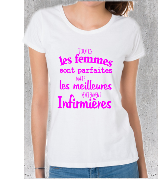 🎁 Pour toutes les femmes passionnées et dévouées qui ont choisi cette profession essentielle. Ce t-shirt est rehaussé par l'inscription  "Toutes les femmes sont parfaites MAIS les meilleures deviennent INFIRMIÈRES".